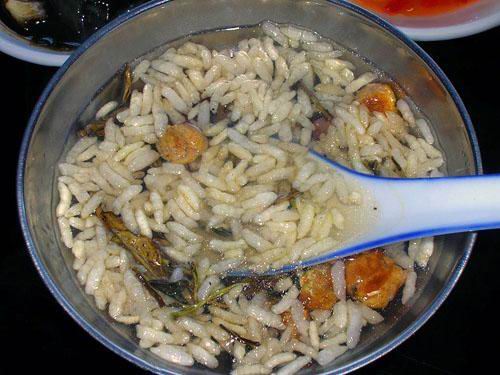 油茶湯喝起來也有講究,喝茶葉湯也有學(xué)問。土家人有一句俗語:“油茶湯不冒氣,巴(注:即燙)壞傻女婿”。因?yàn)樽鲇筒铚话阌秘i油,做好了之后豬油會浮在表面上,溫度極高,但它不像開水會冒白氣,看不出來燙。傻女婿們受丈母娘油茶湯款待,為表示捧場,一大口灌下去,輕者舌頭燙掉一層皮,重者燙得滿嘴水泡。雖然人人都知道這句話,但每每上當(dāng)?shù)娜诉€是不少,其原因都是因?yàn)槠渲谱鞯挠筒铚懔恕?/p>