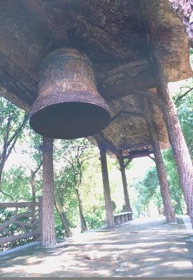 飛來鐘原為君山崇勝寺的古鐘,南宋淳佑五年(公元 1245 年),荊湖安撫制置使孟珙重修崇勝寺時復制一鐘,鐘高一丈多,大數(shù)圍,重4000余斤,上有“淳佑五年造”,鐘身上鑄有“皇帝萬歲,國泰民安,風調(diào)雨順,五谷豐登”16 個大字,四方凸出的部分用青銅澆鑄的四條金龍,栩栩如生,形態(tài)逼真。原鐘在1966 年被砸毀,現(xiàn)在的飛來鐘是1979 年由市閥門廠復制而成,高約2 米,直徑1.2 米,重約 2 噸。鐘身上改鑄著鐘相、楊幺起義的戰(zhàn)斗口號“均貧富,等貴賤”六字,比前者更富有深刻的含義。這口古鐘有段優(yōu)美的傳說。相傳南宋初年,洞庭湖畔數(shù)以十萬計的農(nóng)民在楊幺率領下,掀起了轟轟烈烈的農(nóng)民起義。相傳一天夜晚,朝廷派兵前來偷襲駐扎在君山的楊幺寨,忽然從天上飛來一口巨鐘,鐘聲陣陣,催醒義軍,奮起抗敵,因此叫飛來鐘。這是人們深切懷念楊幺起義軍,用各種方式來表達贊美之情。古鐘的傳說便寄托了人們的這種心情。有人據(jù)此認為,原來的飛來鐘系楊幺起義軍所鑄的報警器。
