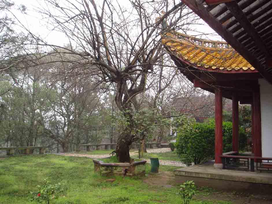 酒香亭在君山中部的酒香山峰上,掩映在翠竹藤蔓之中。入亭小憩,不僅鳥語(yǔ)花香,更有一股隱隱酒香撲鼻。原來(lái)此山中生長(zhǎng)著一種開黃色小花的青藤,花香帶著酒味,這種藤叫酒泉藤,傳說(shuō)用藤上小花釀的酒,喝了長(zhǎng)生不老,可以成仙,這事傳到漢武帝耳里,他便派使臣欒巴率領(lǐng)男女?dāng)?shù)十人趕來(lái)君山,取回了仙酒。酒到京城,卻被當(dāng)時(shí)能言善辯的臣子?xùn)|方朔偷飲了。漢武帝得知,“龍顏”大怒,要將東方朔斬首。東方朔不慌不忙地奏道:“如果喝了此酒真會(huì)長(zhǎng)生不老,可以成仙,皇上就殺我不死,如果臣被殺死了,此酒皇上喝了也不會(huì)長(zhǎng)生不老。”武帝無(wú)言以對(duì),便赦免了他。這事傳到了君山,人們便在酒香山修了酒香亭,以為紀(jì)念。如今的此亭,為一九八一年恢復(fù),占地近三十二平方米,高六米余,為四柱方形、磚石木混合結(jié)構(gòu),古香古色,富有詩(shī)意。