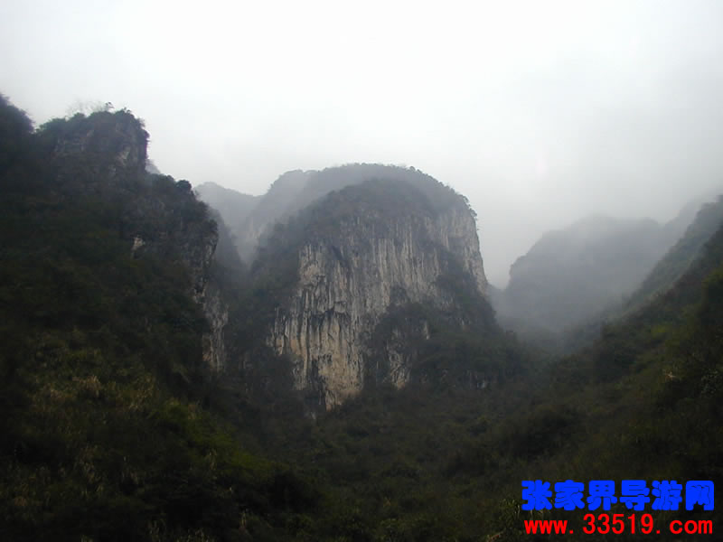南天門——沿著河水一直往里走,在溪水最深處,可以仰望那隱藏在云霧里的南天門。它并不同于天門山天門。它獨(dú)立于眾山之中,就像真正的通天大門,當(dāng)你翻過了前面的天門,卻還要再通過這座南天門,方可真正羽化登仙。南天門旁邊的幾座山峰,也都生的奇形怪狀,倒也天然形成了一個(gè)個(gè)大大小小的自然景觀。宛如天兵天將般守衛(wèi)南天門的將軍巖,象征南天門仙家氣息的蠟燭峰等,散落在四周,構(gòu)成了一個(gè)整體的山體奇觀。
