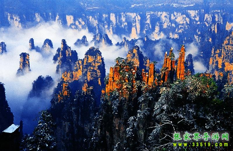 索溪峪風(fēng)景區(qū)索溪峪,西南緊連張家界,西北毗鄰天子山,面積一百四十七平方公里,有景點(diǎn)二百多處。索溪峪山、水、洞自成一體 ,奇峰起伏錯成趣;水,泉清瀑美,千姿百態(tài);洞,幽深神秘,其妙無比。那恍若仙境的地下宮殿黃龍洞,天然浮雕羅列、充滿詩情畫意的十里畫廊,碧波蕩漾的寶峰湖,充滿傳奇色彩的百仗峽及太虛幻境般的西海云霧,一剛一柔、形態(tài)風(fēng)格迥異的鴛鴦瀑.... 無不令人流連忘返。遠(yuǎn)在明代中葉,就有人在巖壁題詩贊曰: “高峽百丈洞云深,要識桃源此處尋。”