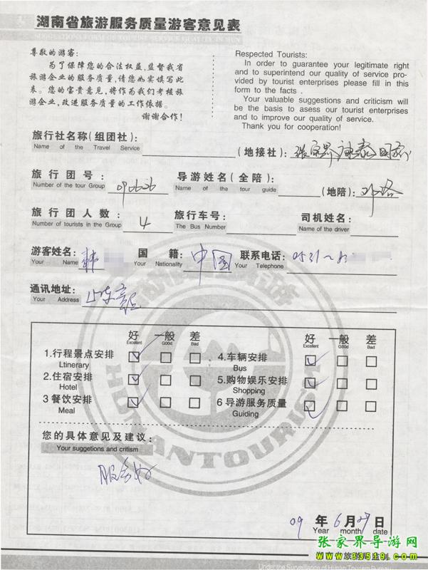 - 游客夏先生為表揚導(dǎo)游李姣姣寫來表揚信致我張家界... [14811]