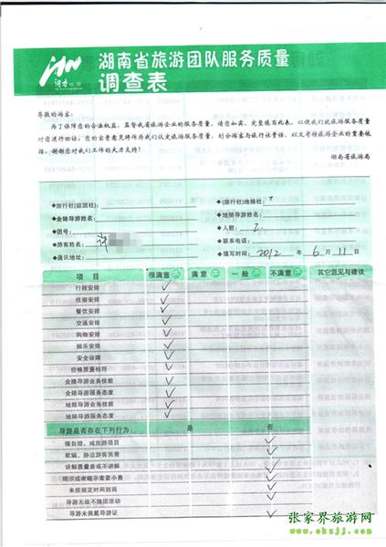 2012年6月11日許小姐一行2人旅游質(zhì)量反饋