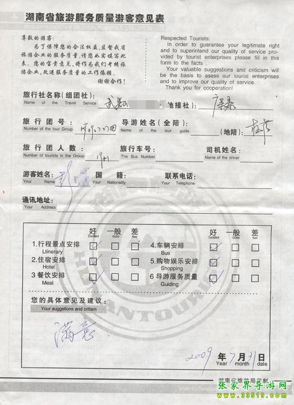 ![]() 2009年7月27日彭女士一行20人接待質(zhì)量反饋單: ![]() |