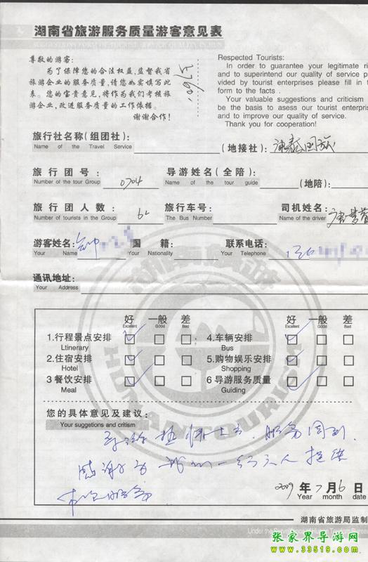 - 游客夏先生為表揚導(dǎo)游李姣姣寫來表揚信致我張家界... [14811]