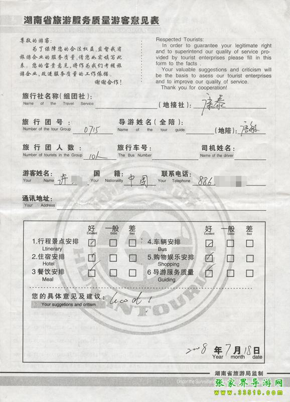- 游客夏先生為表揚導(dǎo)游李姣姣寫來表揚信致我張家界... [14811]