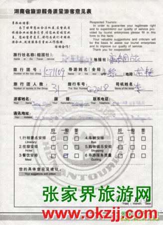 ![]() 2009年11月9日馬來(lái)西亞yeap先生一行31人旅游接待質(zhì)量反饋單: