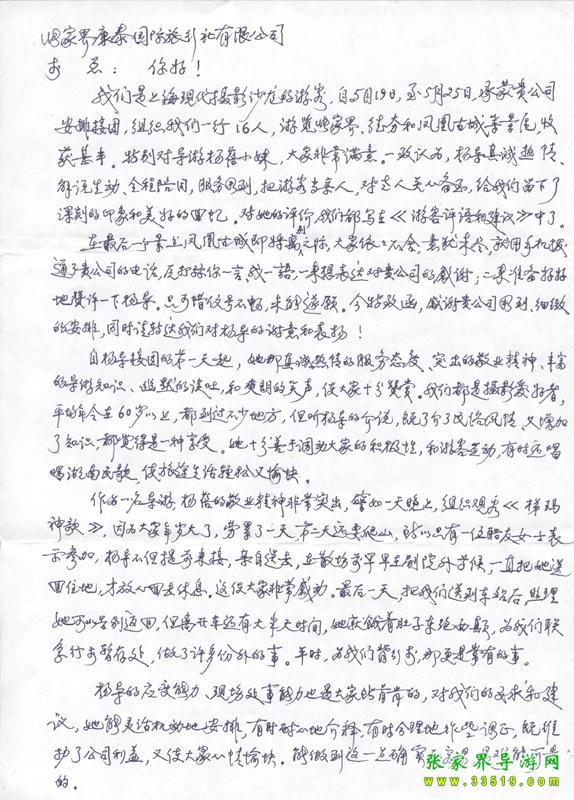 - 游客夏先生為表?yè)P(yáng)導(dǎo)游李姣姣寫來(lái)表?yè)P(yáng)信致我張家界... [14811]