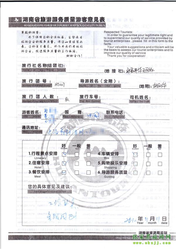- 2011年10月26日張小姐一行18人旅游質(zhì)量反饋 [10482]
