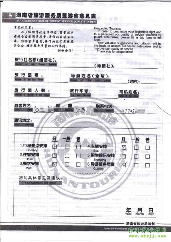 - 2011年10月26日張小姐一行18人旅游質(zhì)量反饋 [10482]
