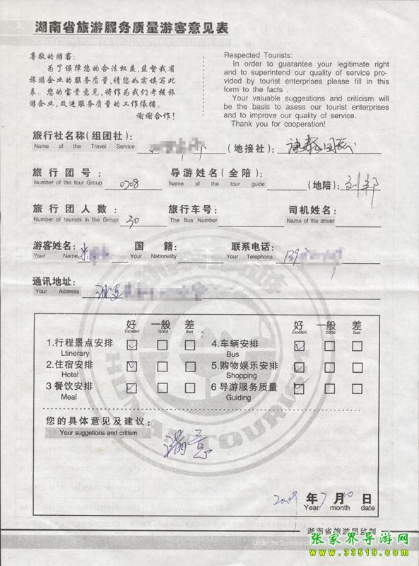 ![]() 2009年7月8日汨羅朱先生一行30人質(zhì)量接待反饋單: ![]() |