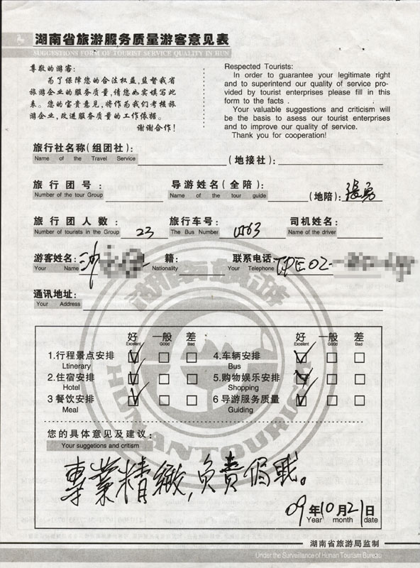 - 游客夏先生為表揚(yáng)導(dǎo)游李姣姣寫來表揚(yáng)信致我張家界... [14811]