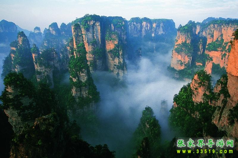 第二天早上,我們參觀了袁家界的風(fēng)景,其中最有名的當(dāng)然數(shù)天下第一橋,這是由兩座巖石山的山頂自然生長(zhǎng)在一起,非人所能為也。天下第一橋的稱號(hào)當(dāng)之無(wú)愧啊。當(dāng)然在袁家界,后花園也是不能不看的。張家界號(hào)稱“峰三千,水八百”,在這里你就能明顯的感覺(jué)到這句話的前半句是那么的實(shí)在??赐陱埣医绲暮诵脑医纾覀兂塑嚨搅?a class="insidelink" href="http://www.mdongbang.com/scenic/zjjjq/1529295057.html" title="天子山">天子山(張家界景區(qū)內(nèi)的最高的地方)。玩了賀龍公園、御筆峰、仙女散花、西海、石船出海、仙人橋、天子廟、十里畫廊、一步難行。不巧的是,那天山上下了一點(diǎn)陣雨,雨后一條彩虹掛在天上,更重要的是山上起了一點(diǎn)霧,使整座山都籠罩在霧中,若隱若現(xiàn),看上去就象是在云海中,好象老天特地配合我們似的,難得一見(jiàn)的西海等正好被我們趕上了。江導(dǎo)告訴我們,這樣的機(jī)會(huì)是很難得的,可能是張家界為了感謝我的再次到來(lái),給了我一個(gè)特別的禮物吧。我大笑。晚上趕到昨天住的地方去住宿。不提。